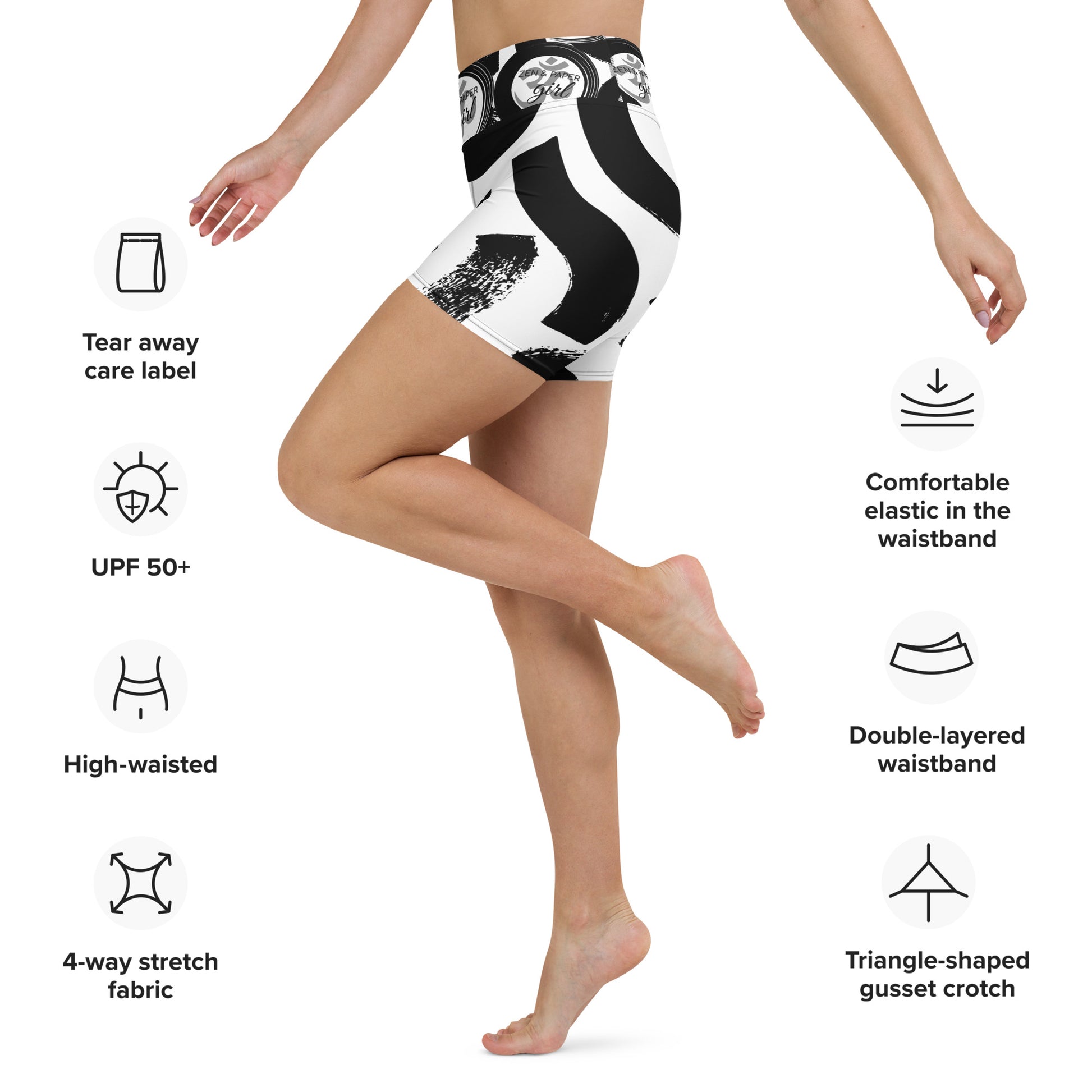 Our Zen & Paper Girl Black and White Yoga Shorts are designed with the modern yogi in mind. The high waistband is perfect for any kind of asana and provides maximum comfort. Take your workouts to the next level in these yoga shorts! The body-flattering fit ensures you will look and feel great while practicing. These shorts are made from soft microfiber yarn, which feels great against your skin. Enjoy a relaxed fit that allows for movement, making them the ideal choice for yoga or even just lounging around at home.