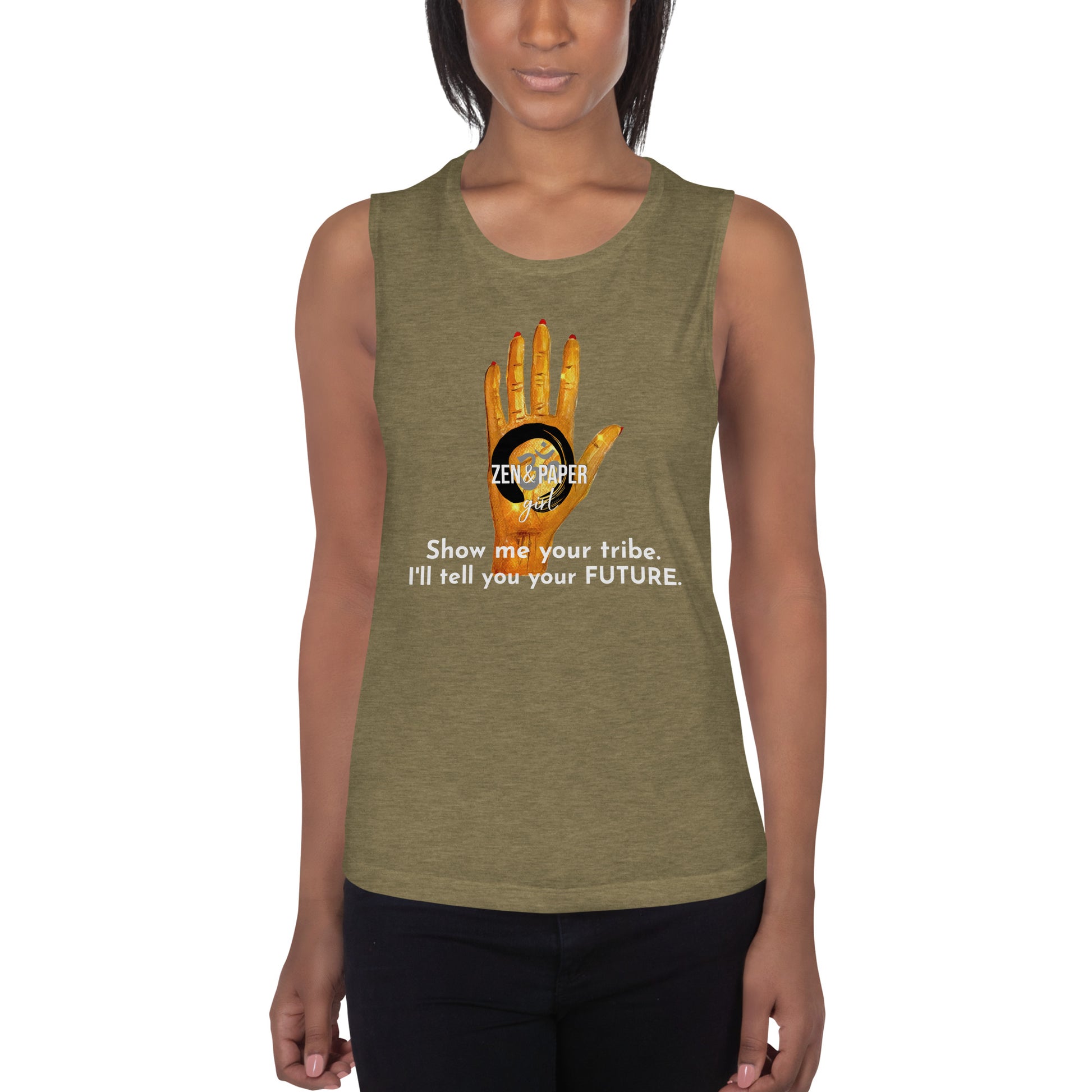 Zen & Paper Girl Future Ladies’ Muscle Tank - White Print